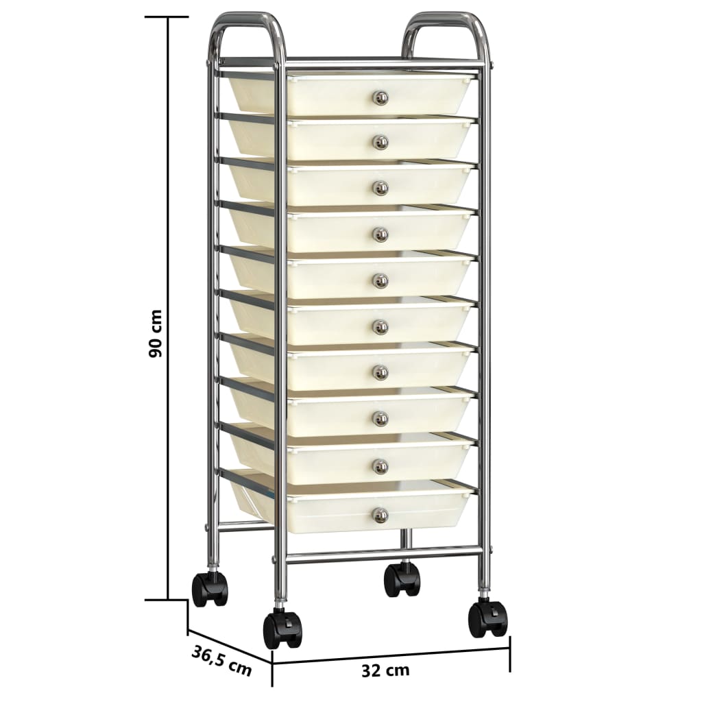 10 laatikon liikkuva säilytysvaunu valkoinen muovi