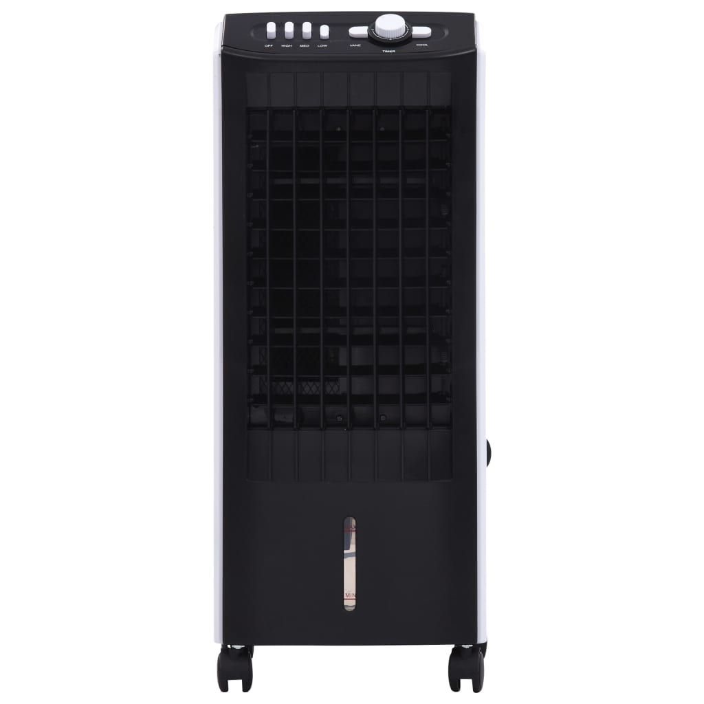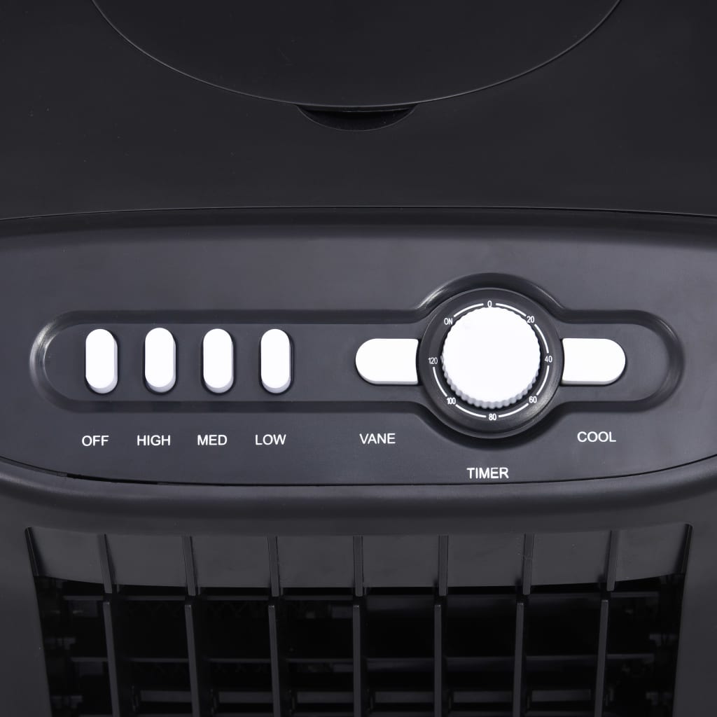 Painikekatkaisimet ovat helpot ja nopeat käyttää. Kolme tehoa takaa, että voit aina valita ilmavirran voimakkuuden tarpeesi mukaan seuraavista vaihtoehdoista: matala, normaali ja korkea. Voit helposti valita toiminta-ajan 0 - 2 tunnin väliltä sisäänrakennetulla ajastimella. Jäähdytin toimii jääpakettien avulla ja parantaa jäähdytyksen tehoa. Irrotettava jäälaatikko on helppo täyttää ja imee lämmön vedestä ja saa vesitankin lämpötilan laskemaan ympäristöä alemmaksi. Vedentason merkki näyttää sinulle nopeasti, milloin sinun pitää lisätä vettä. Tuuletin on myös helppo siirtää huoneesta toiseen neljän sisäänrakennetun rullapyörän ansiosta.