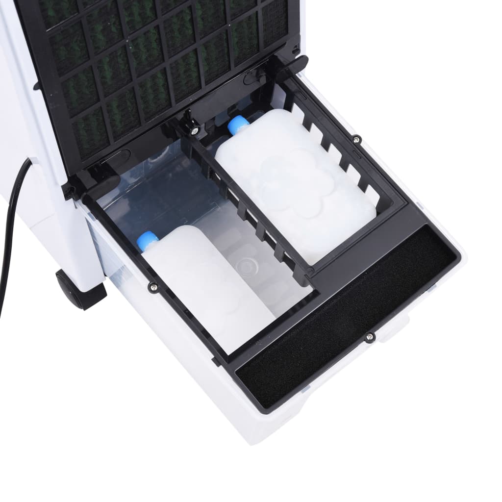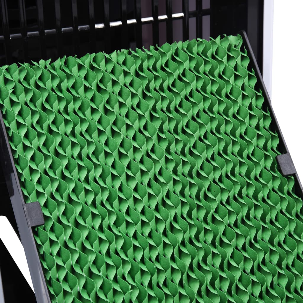 Tämä haihduttava ilmanjäähdytin yhdistää jäähdyttimen, kostuttimen ja puhdistimen yhteen laitteeseen. Se tarjoaa rauhoittavan, viileän ja kostean ilmavirran huoneesi jokaiseen nurkkaan!