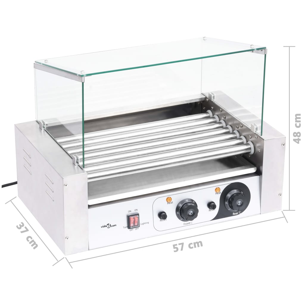 7-rullainen Hot Dog grillilaite lasikannella 1400 W