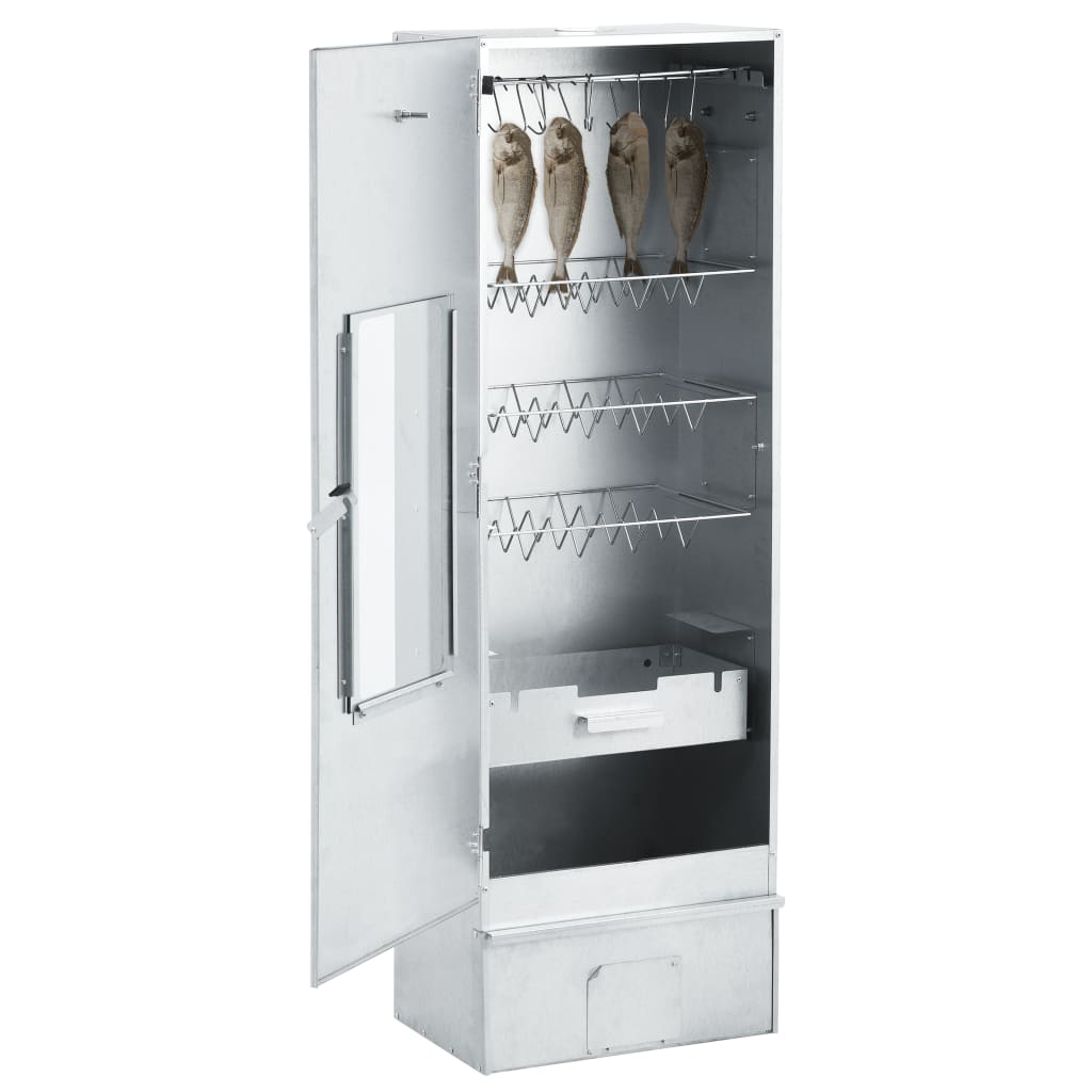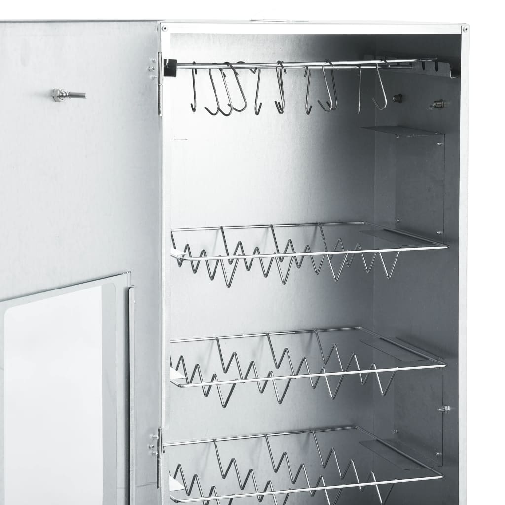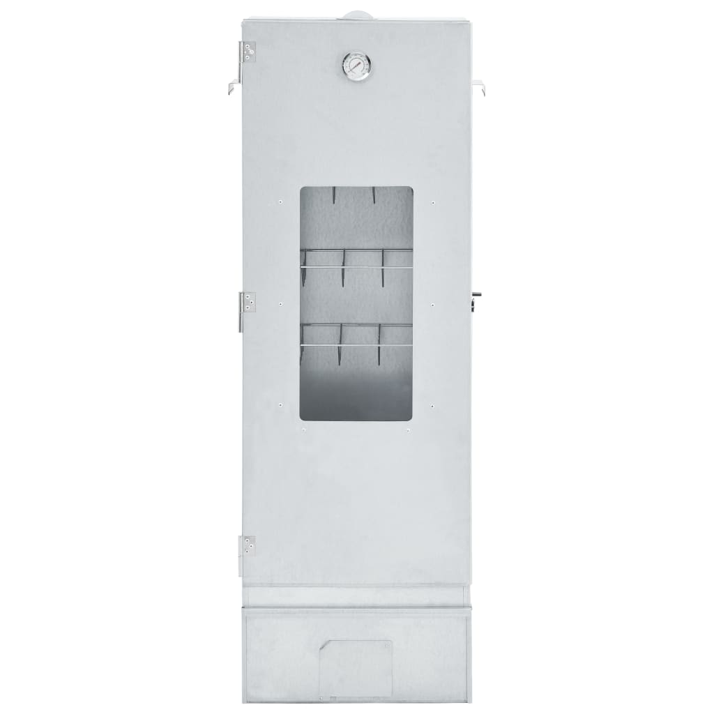 Savustin on varustettu lämpömittarilla, joka pitää sinut tietoisena kammion lämpötilasta. Ikkunan läpi voit pitää sisällä olevaa ruokaa silmällä. 124 cm korkea savustin tarjoaa reilusti tilaa lihan savustamiseen.
