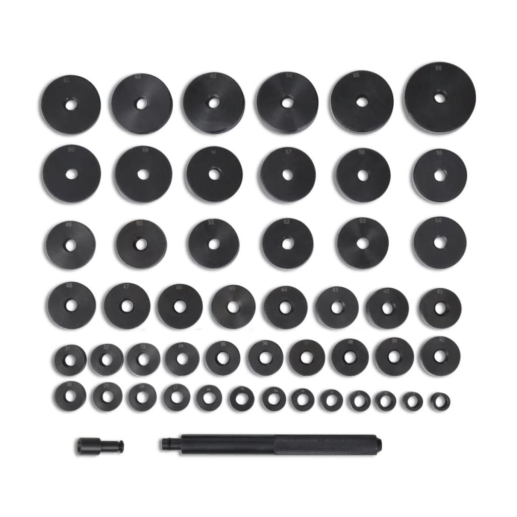 Siinä on kaikki mahdolliset koot, jotka tarvitset useimpiin ajoneuvoihin. Sinun ei tarvitse enää vaivautua löytämään hylsyjä, jotka olisivat suunnilleen laakereita vastaavia. Kun sinulla on käsissäsi tämä työkalusarja, voit yksinkertaisesti valita tarvittavan koon, jotta voit koota työkalun ja täten tehdä työsi loppuun nopeasti, tehokkaasti ja ammattimaisesti. Levyjä voidaan käyttää manuaalisesti vasaran/kahvan kanssa tai hydraulipuristimilla.